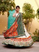Step into timeless tradition with this beautifully crafted Tussar Silk Lehenga Set. Designed with exquisite Patola print and accented with shimmering foil work, this stitched lehenga offers a flattering silhouette with a 3.80-meter flair and supportive waist fit up to 42 inches. Enhanced with canvas, can-can, and finished with a drawstring, zip, and heavy tassels for added charm.